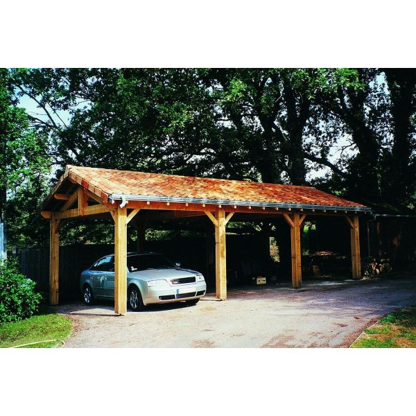 Abri voiture en bois charpente traditionnelle (3 voitures)