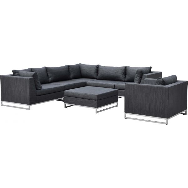 Salon de jardin bas aluminium anthracite et coussins gris ...